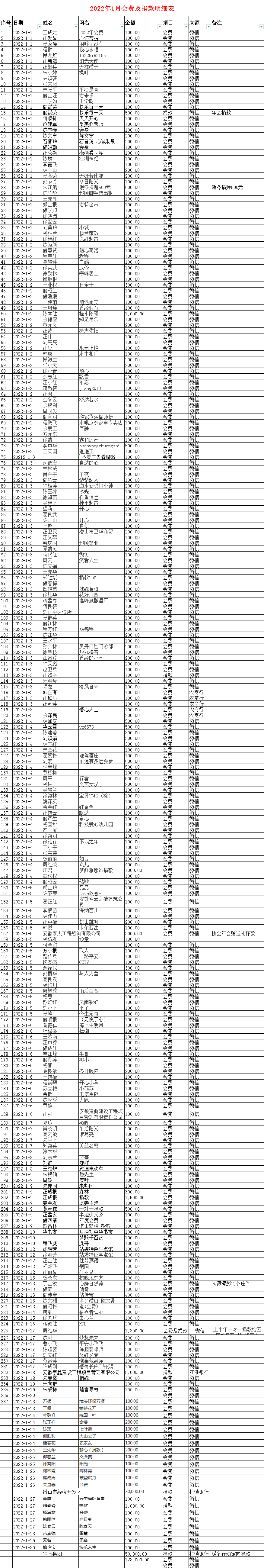 潜山市天柱爱心协会2022年1月份会费及捐赠明细