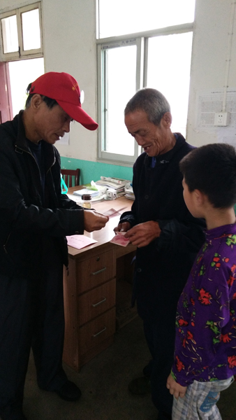 江某雨和他的爷爷接受了江徽农庄的捐款
