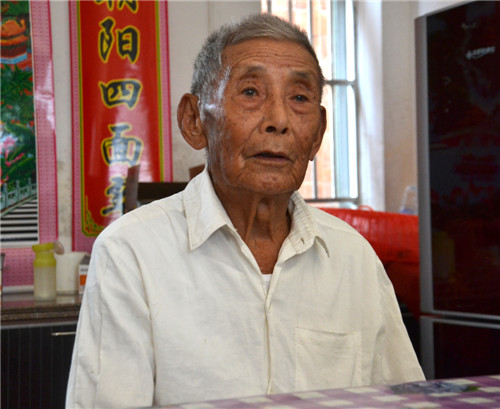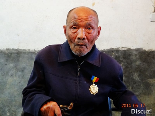 潘汪根家在油坝乡张祠村青年组,不识字。“我是民国17年出生的,今年88岁”他告诉我们过去的事,总以民国记年。“民国33年(1944年)正月二十左右,国民党来抓壮丁,那年我才15、6岁,我顶了哥哥当了壮丁,当时的保长卢龙进(音,卢老屋人)负责抓的,交到当时的接兵团,后来分到六安毛坦厂,属国军59军49师78团3营7连,团长姓蒋,名字不记得了。我们部队的任务是与日本人作战,但是我没有直接上战场,主要是做后勤,做饭、洗碗,当炊事员。战友有孙次周(音),潜山罗汉人,还有一个战友叫聂胡记(音),也是罗汉人,两人都已经去世。民国35年3、4月间一颗炮弹打伤了小腿,到现在仍然受伤变形、变黑。腿受伤后,部队医疗紧张,潘汪根就被迫回到了老家治腿。当时花了十担稻治伤。“现在他的腿伤每年都会复发,一般在每年的3、4月份,流黄水。”(由于潘汪根当兵时年龄小,记忆不清,所述内容无法考证,老兵组织未通过认证)