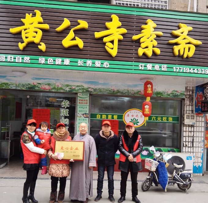 黄公寺位于潜山县水吼镇栗树村,距水吼老街约两公里,始建于明代,在县城大园路设有黄公寺素斋馆。长期以来,该寺一直积极投身社会慈善公益事业,扶危济困,助学助残,2016年在潜山遭受特大水灾之际,携手天柱爱心协会和信众一道帮助受灾群众,为抗洪群众义务送盒饭数千份,并向水吼镇捐款4000元。