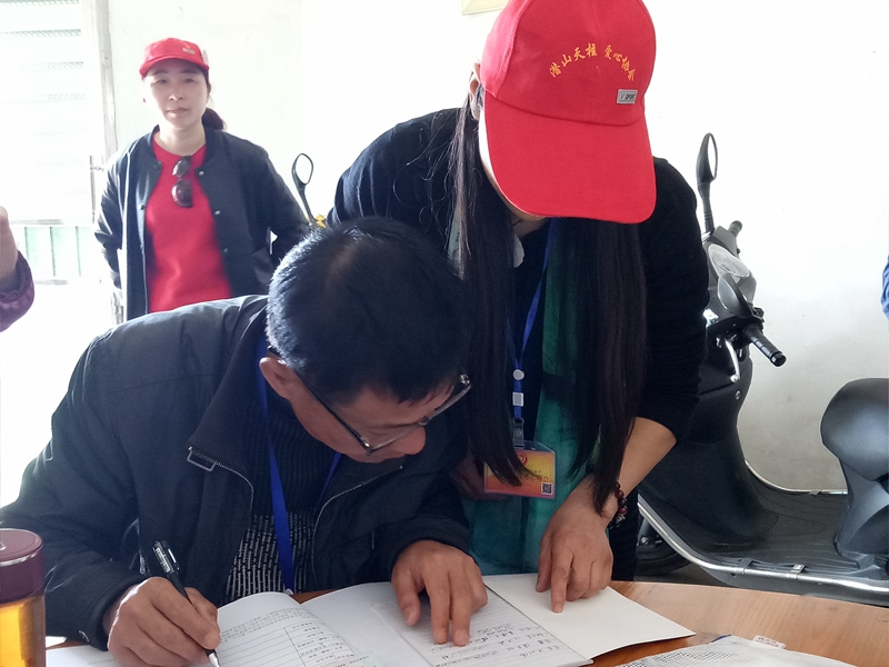志愿者们首先来到油坝乡崔仓村老兵刘观明家,把礼包里一件一件物品递到老人手中,穿到身上。穿戴整齐后,老人突然向志愿者举起手来敬礼,脸上露出了幸福的笑容。1940年8月,16岁的刘观明加入国民党59军180师539团,时任上等兵,机关枪手,1943年至1944年在湖北宜昌、江西龙潭等与日军多次作战,战斗中负伤致右手手指残疾,1949年元月退伍。老人回忆起当年在战场上与敌人生死搏杀的场景,在场的志愿者与同身临其境,纷纷感叹没有前辈的流血牺牲,哪有今天的幸福生活。当老兵准备在《签收回执》上签字时,一直站在老人身边的两名志愿者抬起长凳,让老伏在凳子上签上自己神圣的名字。