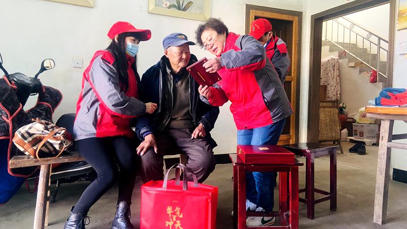 志愿者们驱车100余公里,先后来到源潭镇双峰居委会、余井镇马道村、油坝乡崔仓村和张祠村的徐东旭、江洪涛、刘观明、夏德兴家中,与抗战老兵们促膝长谈,嘘寒问暖,传达基金会、老兵组织和天柱爱心协会对他们的敬仰、关心和关怀,叮嘱老兵的家人们要照顾好老人们的身体,并祝愿他们健康长寿,祝福新春快乐。