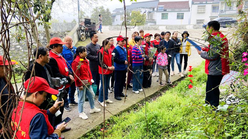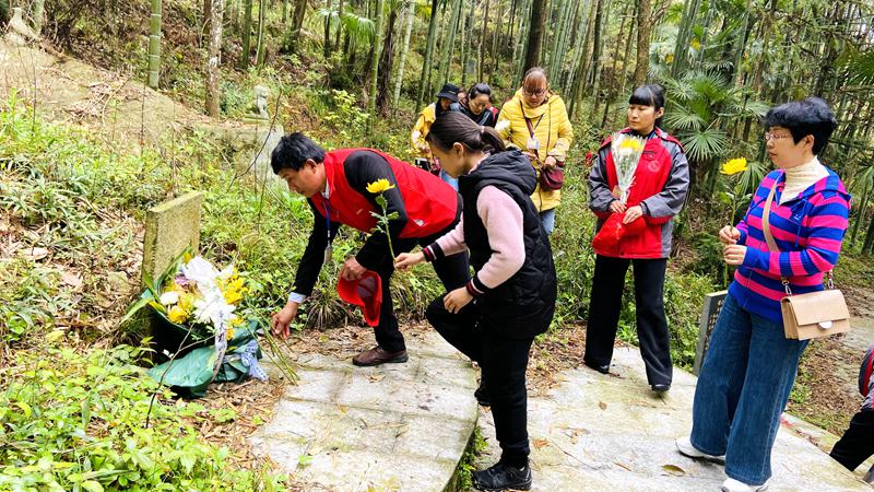 上午8时,30余名志愿者集中乘车,来到黄铺镇云峰村,先后祭拜了8处掩埋在田边、地头、竹林、路旁的138师抗战英烈,并参观了138师部旧址,聆听138师部旧址管理小组关于138师抗战历史介绍。