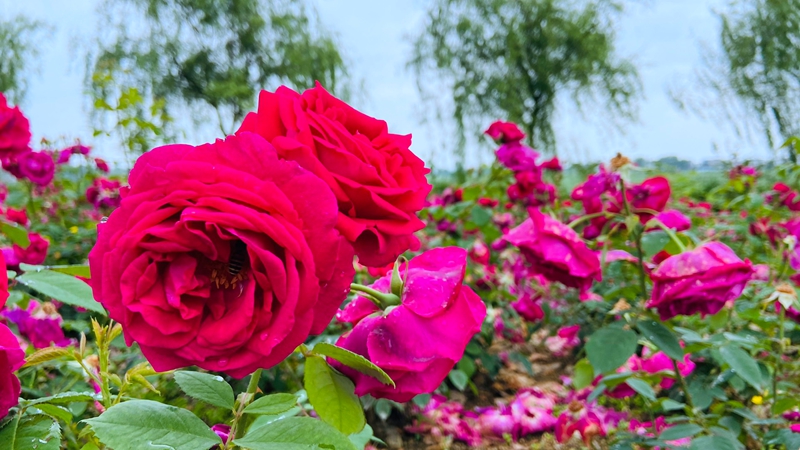 “ 江徽农庄,花开正艳。”位于天柱山脚下痘姆乡吴塘村的江徽农庄,紧靠潜山母亲河,距离六潜高速天柱山附近,是宁波市江徽美食餐饮有限公司投资兴建的集种植、养殖、采摘、垂钓、吃、住、游于一体的现代农庄,农庄内种植了众多的树木和花草,多品种的玫瑰更是四季盛开,花香四溢,五颜六色,美不胜收。