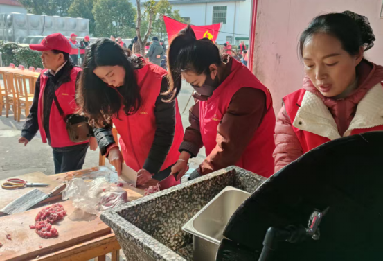 三月春风暖人心,雷锋精神伴我行 记天柱爱心协会志愿者走进塔畈敬老院开展雷锋月活动暨主题党日、“巾帼学雷锋,敬老新风采”活动 阳春三月春意盎然,全市上下结合“雷锋月”的活动蓬勃开展。3月8日恰逢国际劳动妇女节,潜山市天柱爱心协会党支部及协会妇联组织爱心协会志愿者们及爱心商家前往塔畈敬乡老院,开展了一场温馨的志愿服务活动。 按照活动方案的内容,爱心协会的志愿者们抵达敬老院后,分成5个志愿服务小组开展活动,分别是餐饮组、演出组、医护组、服务组、安保组。 餐饮组负责今天为敬老院的老人们做精美的午餐,为了保证食材的新鲜,清晨6点多,协会妇联主席杨胜兰和其他几位妇联执委严少英、陈燕等早早的买好了今天所需的菜品。当他们把大包小裹的菜品拖到集中出发地点的时候,其他的志愿者也已经陆续到位了。7:30,参加今天活动的志愿者们全部到位,清一色的红马甲和小红帽,穿戴整齐 ,在朝阳里熠熠生辉。山路崎岖蜿蜒盘旋。 车行一个多小时终于抵达了塔畈敬老院。当地的会员志愿者们唐凯、凌明焰、彭爱节、杨晓东、操龙焰、姜同庆等,已经开始了准备工作了。各组志愿者马上进入工作状态,热气腾腾的厨房里,洗切菜,生火,煮饭井然有序,演出组组装设备,调试音响有条不紊,参加演出的演员志愿者们也在紧张的准备着道具和服装。尚美美容美发的老板赵建军率领着几名理发师,早早的就开始了工作,爱心商家杨兰家政公司的志愿者们已经上上下下忙乎开了,几名穿白大褂的眼科是来自康视眼科医院的医生,搭好了简易的台子工作了,为老人们做眼科测试。塔畈乡政府对本次活动高度重视,相关领导也到场参与并鼓励。